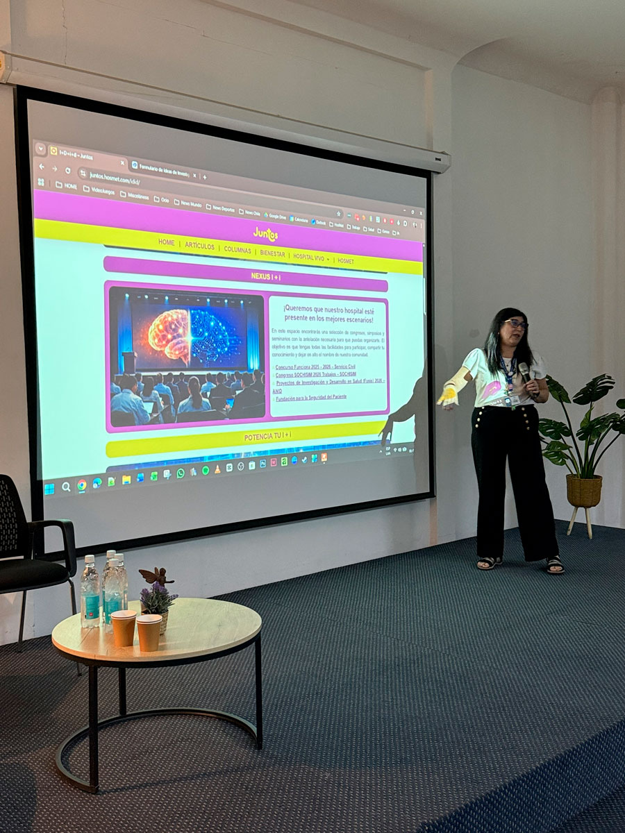 También conocimos la nueva página web I+D+I+D del HosMet de la mano de la enfermera Nelly Gálvez, en tanto que la encargada del Comité de Innovación del SSMO, María de los Ángeles Zúñiga, nos presentó cómo se está trabajando en potenciar el talento de toda la Red Oriente.