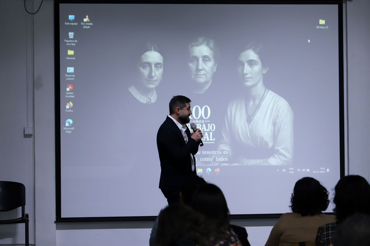 Las exposiciones comenzaron con la intervención de Teresa Matus, decana de la Facultad de Ciencias Sociales de la Universidad de Chile, quien analizó las innovaciones sistémicas en salud pública y los desafíos del trabajo social contemporáneo. En su presentación, enfatizó que los avances alcanzados en este siglo de historia deben proyectarse hacia una sociedad “más justa, más libre y más fraterna”.
