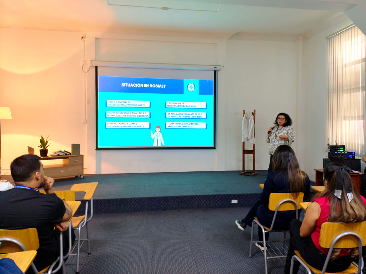 Mientras a nivel nacional ya se dio el vamos a la “Campaña de Invierno 2026”, con la vacunación masiva a los grupos de riesgo, la Directora del Hospital Metropolitano, doctora Margarita Samamé, ofreció una interesante exposición a la comunidad funcionaria en torno a la historia de esta política pública y a cómo la está ya afrontando el HosMet.
