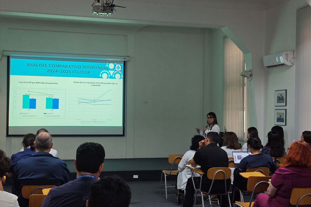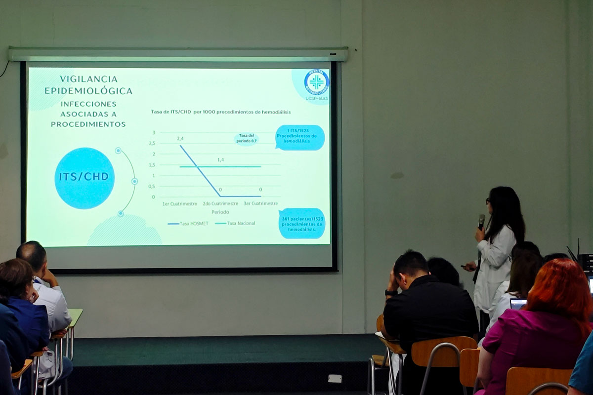 Como parte del resumen de hallazgos epidemiológicos claves obtenidos en 2025, el equipo de Calidad e IAAS destacó el desempeño institucional bajo las tasas de referencia nacional, la reducción significativa de la tasa de neumonía asociada a la ventilación mecánica (NAVM), la reducción sostenida de infecciones asociadas a catéter urinario, la ausencia de brotes intrahospitalarios y la vigilancia efectiva de agentes de riesgo epidémico.