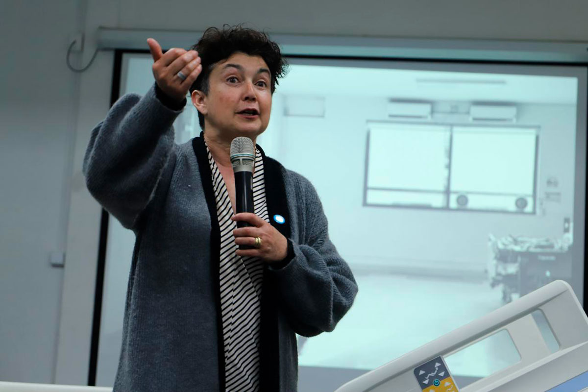 La actividad fue inaugurada por Javiera Baeza, terapeuta ocupacional y encargada del comité, quien destacó la necesidad de integrar la humanización como un eje transversal del quehacer hospitalario. Posteriormente, distintas voces compartieron sus experiencias y reflexiones sobre el tema: la actriz Paulina Urrutia; la Directora del Hospital Metropolitano, Dra. Margarita Samamé; la enfermera Adriana Arias, encargada del Programa RNAO en nuestro hospital; Laura Camus, representante del Ministerio de Salud en este importante tema; el psicólogo Marcelo Pinto, de la Mesa de Humanización del SSMO; el Dr. Manuel Ramírez, Subdirector Médico del Hospital del Salvador; Rebeca Aguayo, presidenta de la Red de Humanización en Salud; y las profesionales Javiera País (fonoaudióloga) y Javiera Herrera (kinesióloga), integrantes del comité organizador.
